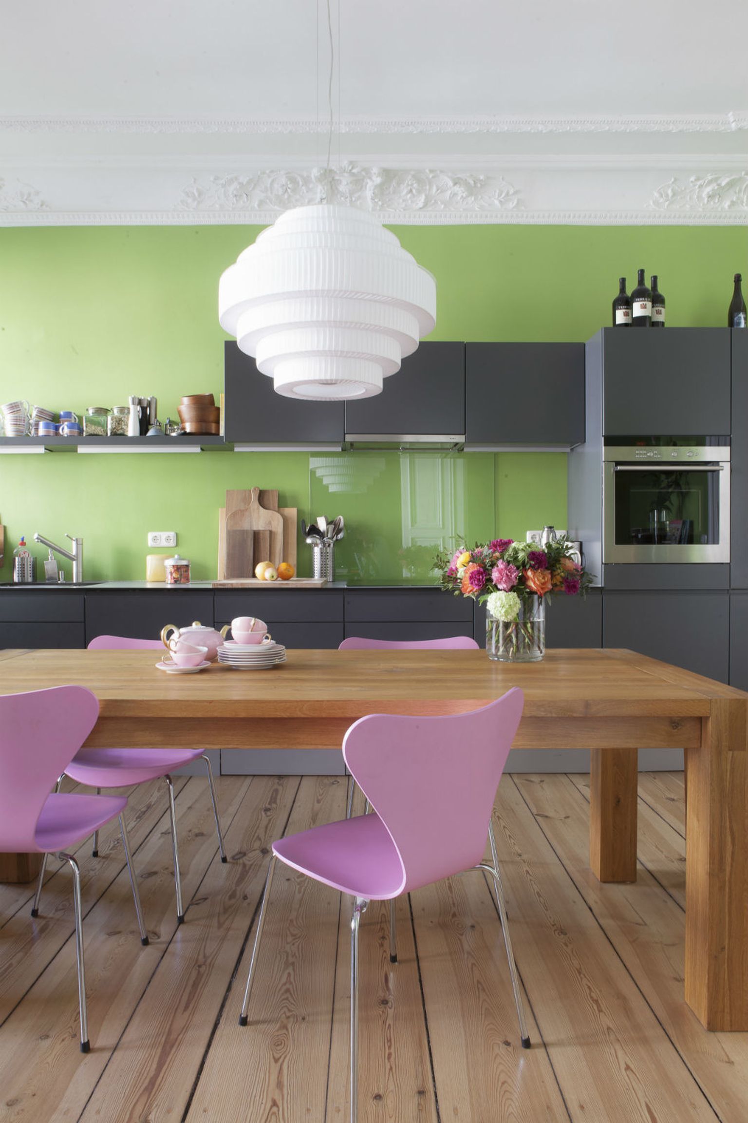 • Zelena boja u kuhinji odlično se slaže s ružičastom Foto: Living4media