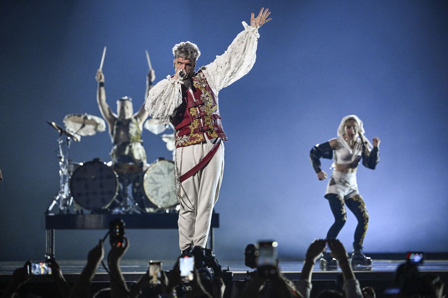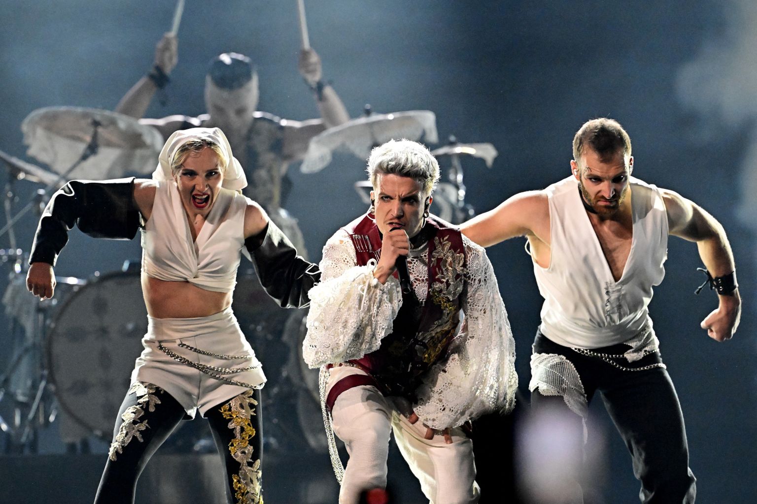 • Baby Lasagna na Eurosongu je nosio bijeli čipkasti top Foto: AFP