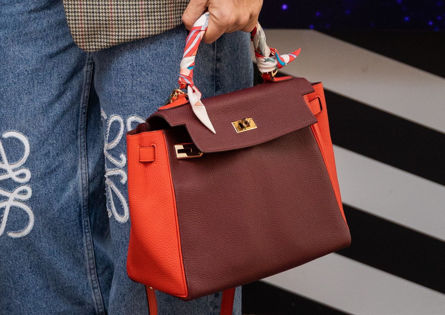 • Branka Krstulović nosi finu torbu u kombinaciji smeđe i narančaste boje Foto: Sasa Buric/Cropix