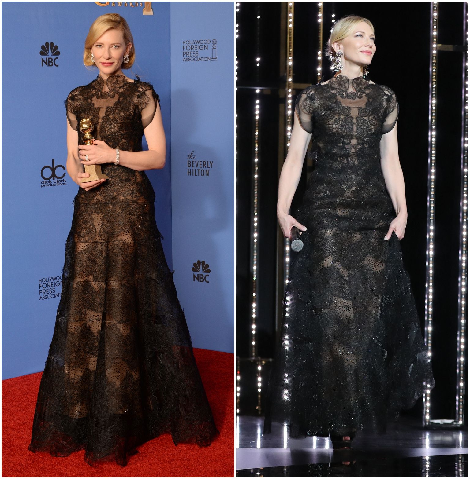 • Cate Blanchett na dodjeli Zlatnih globusa 2014. i u Cannesu 2018. Foto: Afp