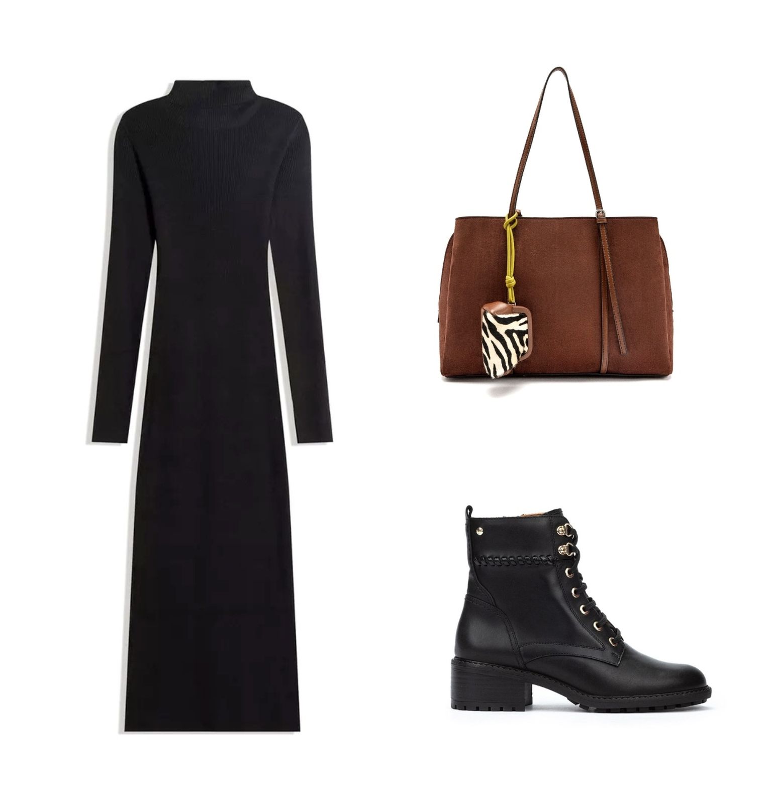 Crna pletena haljina u poslovnoj kombinaciji