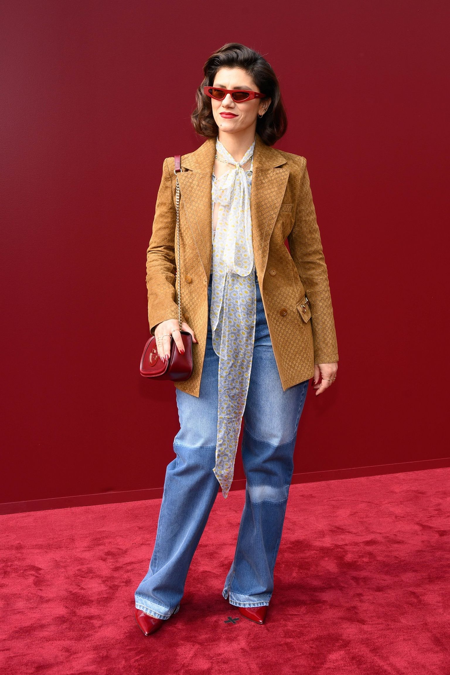 • Demi Moore u Gucci trapericama, bluzi i sakou iz Cruise kolekcije za 2025. Foto: Profimedia