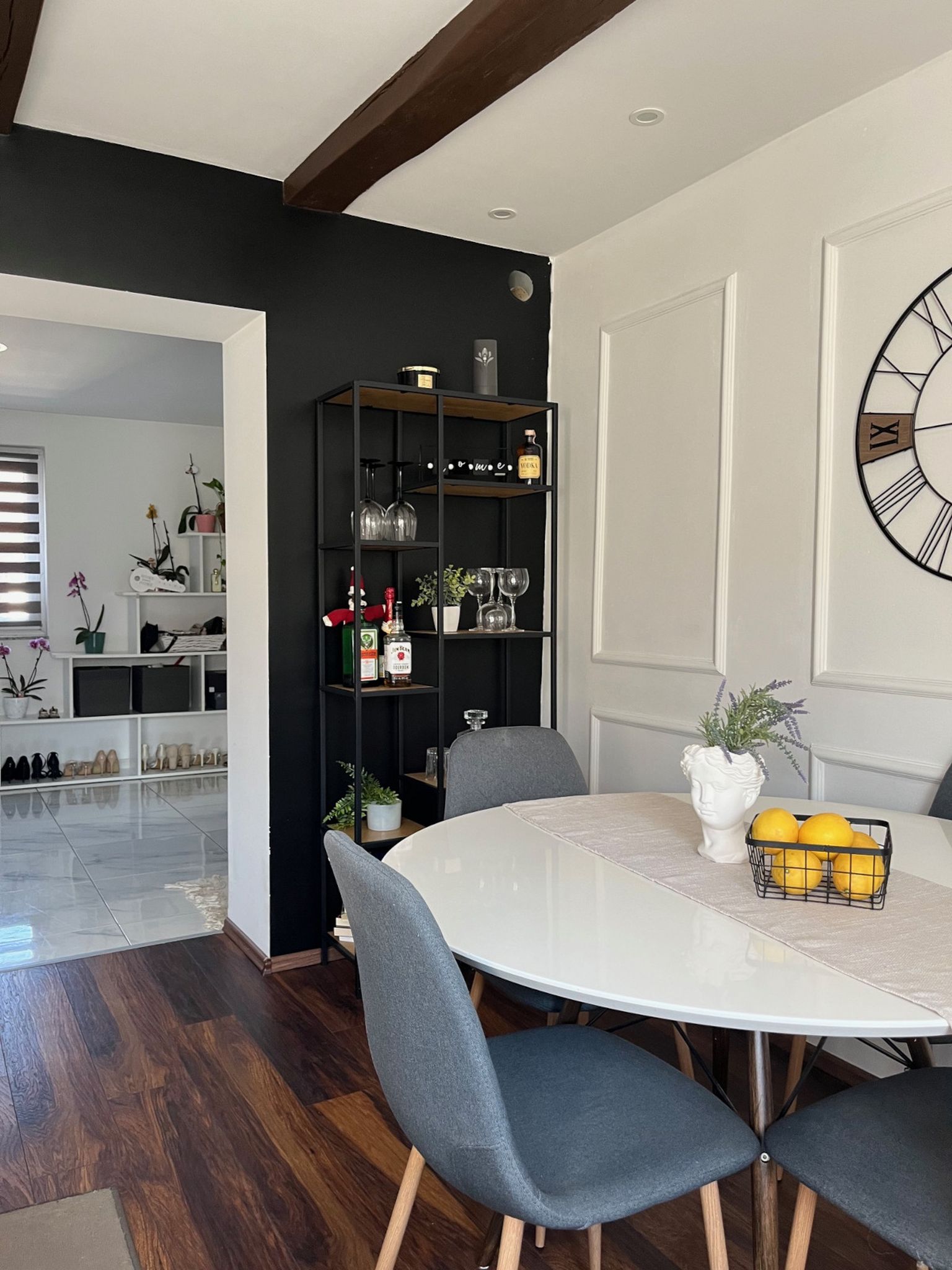 Kako je imala viziju u glavi da želi dosta tamne tonove, dodatne ideje našla je na Pinterestu, pa tako i onu za crni zid