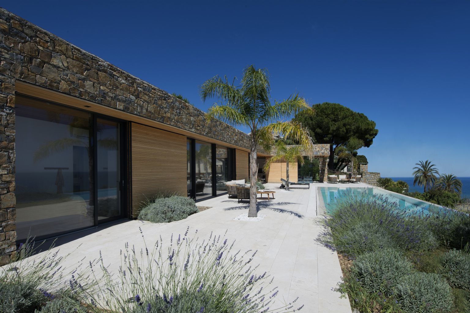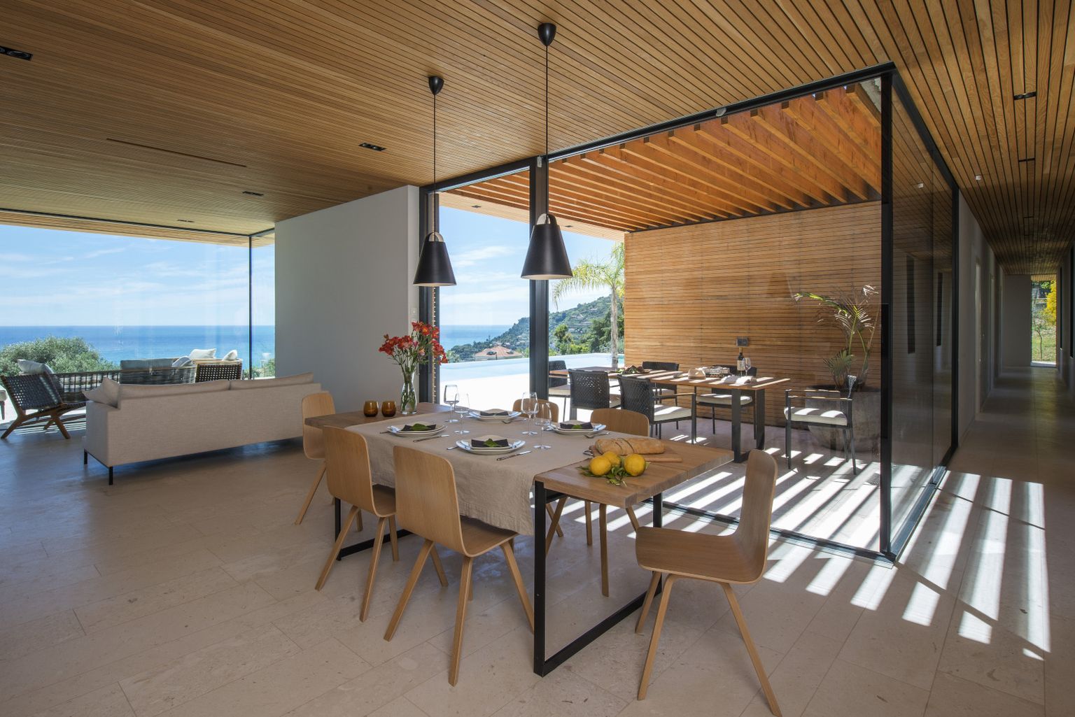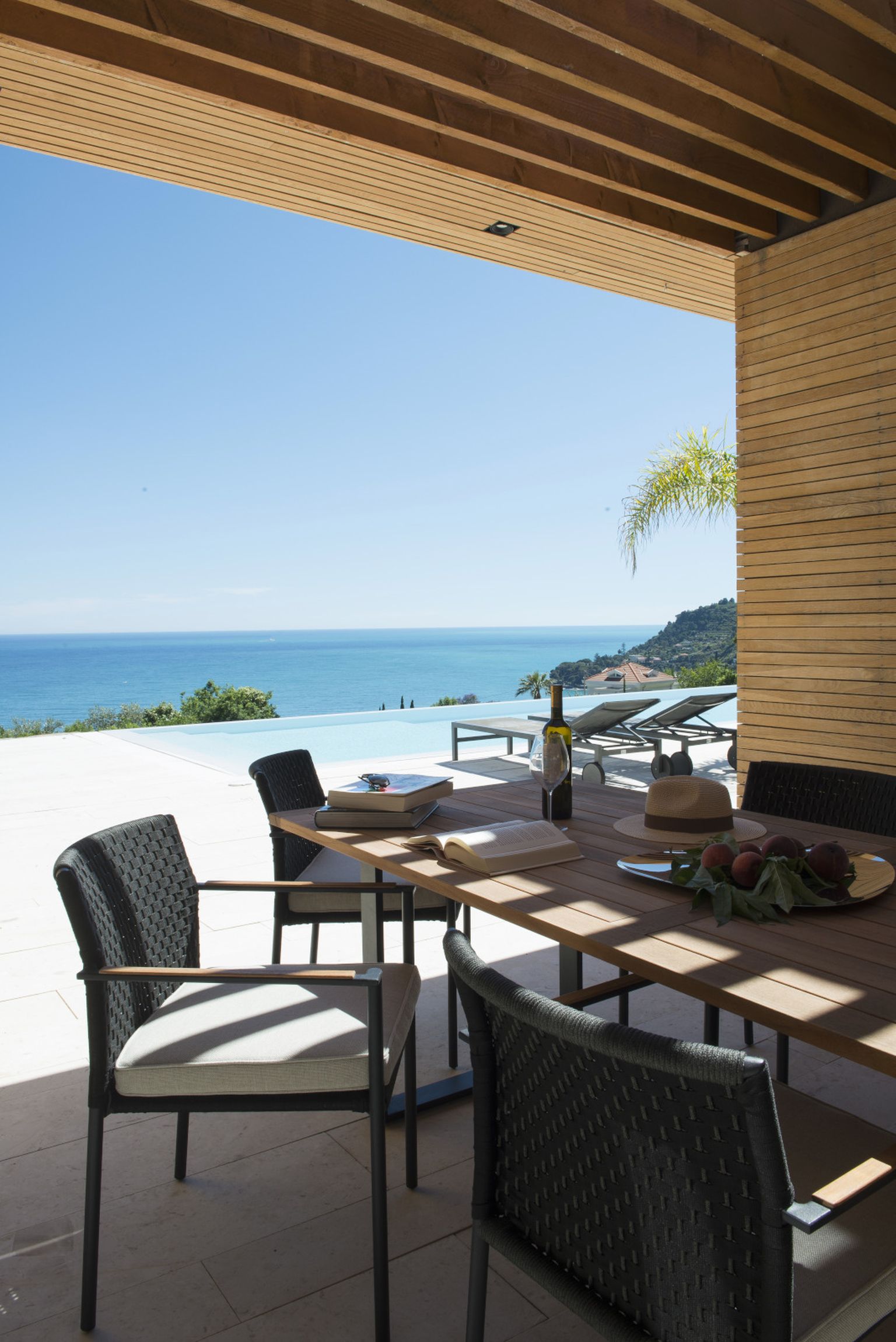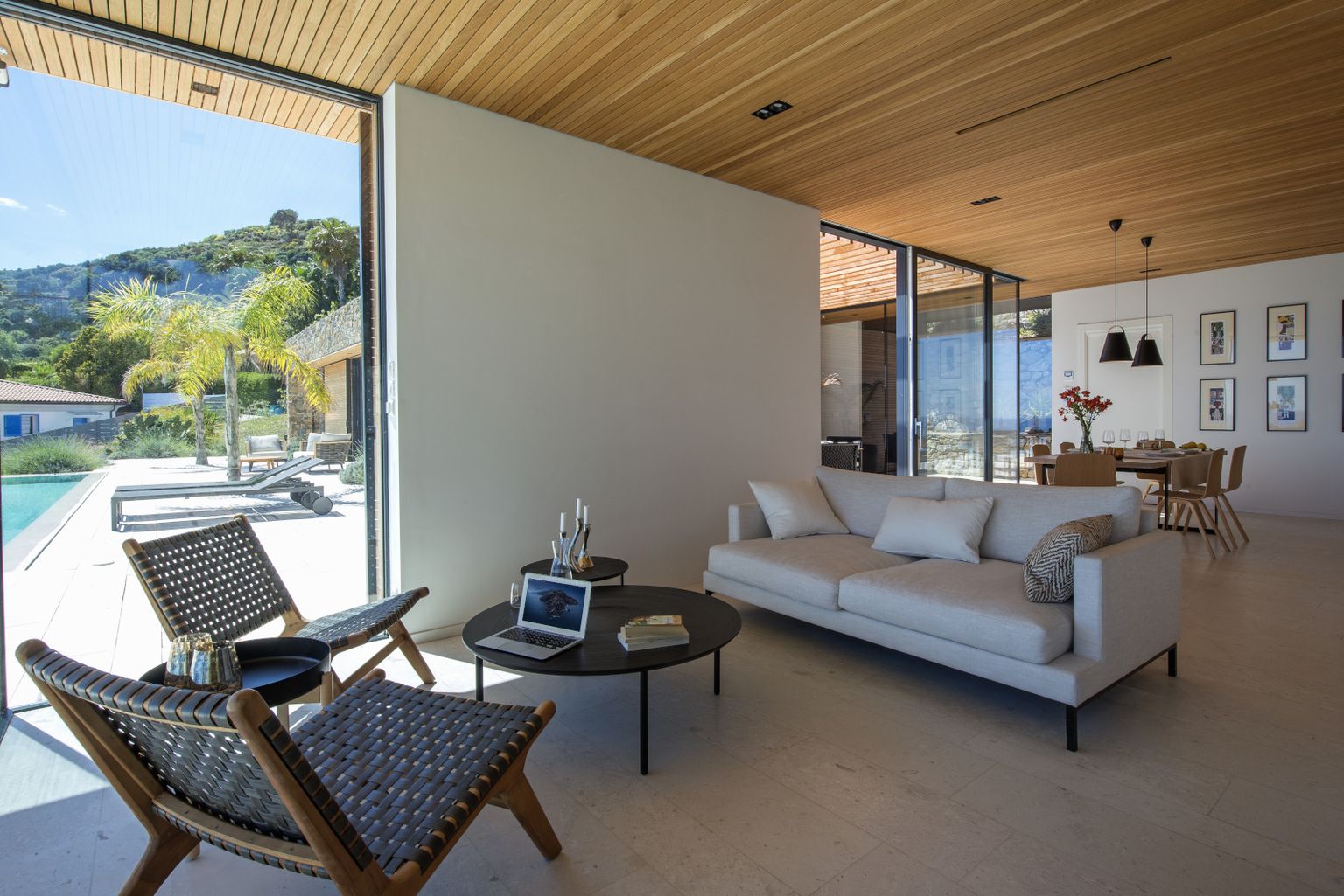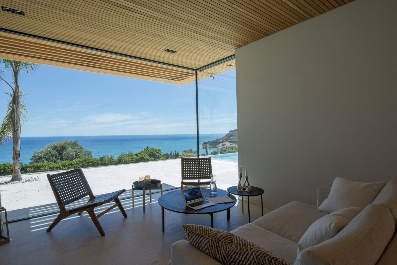 • Prozračni open space svijetlih tonova nastavlja se na veliku terasu s bazenom i spektakularnim pogledom na more Foto: Living4media