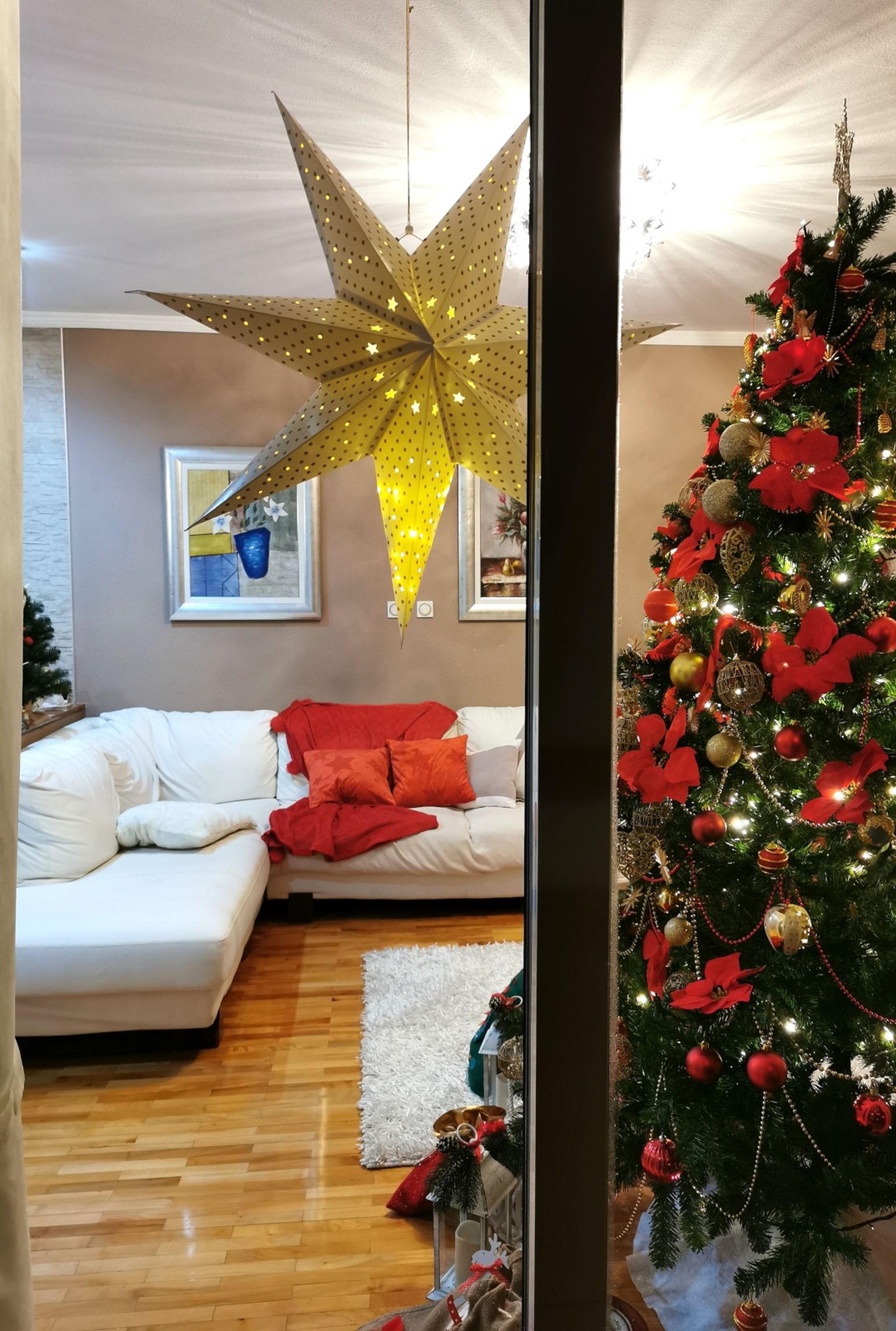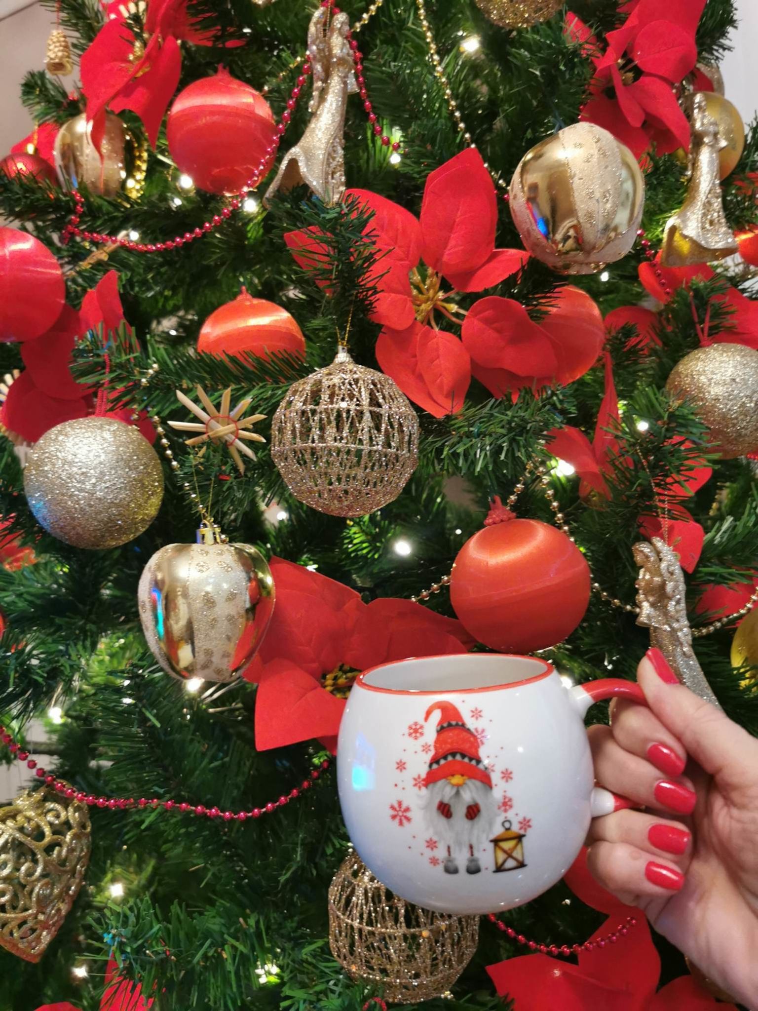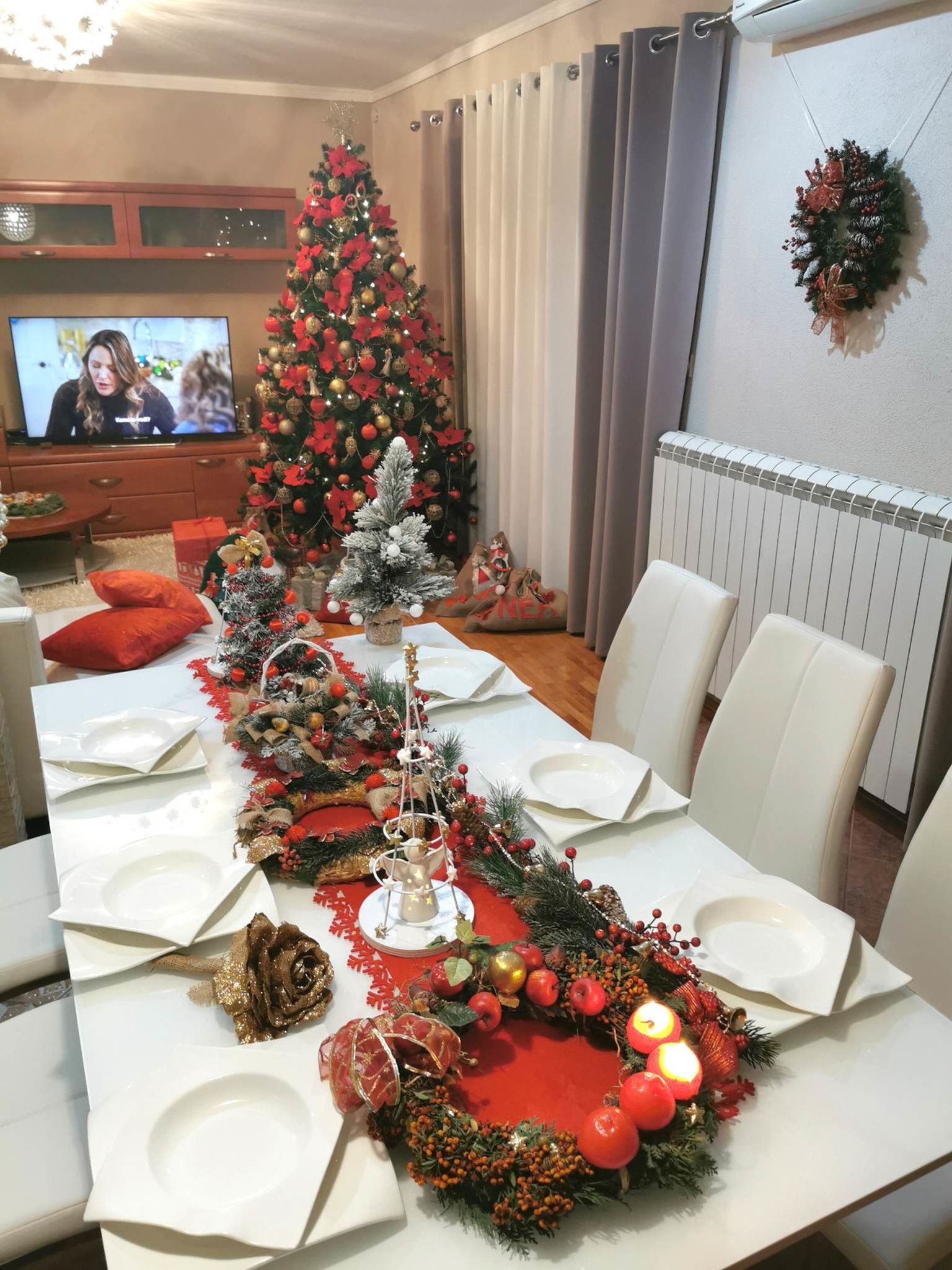 Božićno uređenje kuće Daniele Bobanović iz Rijeke u crveno-zlatnoj kombinaciji