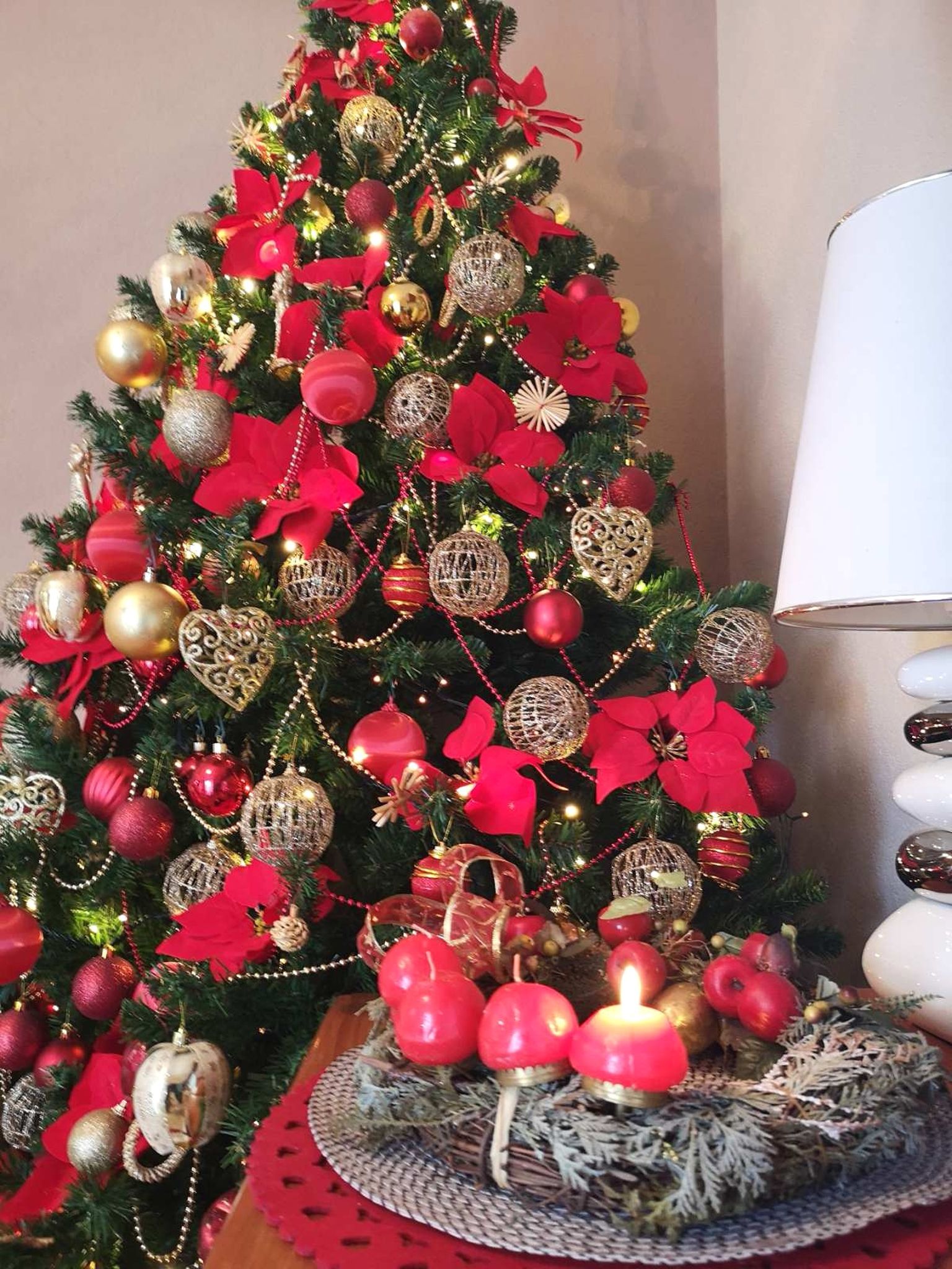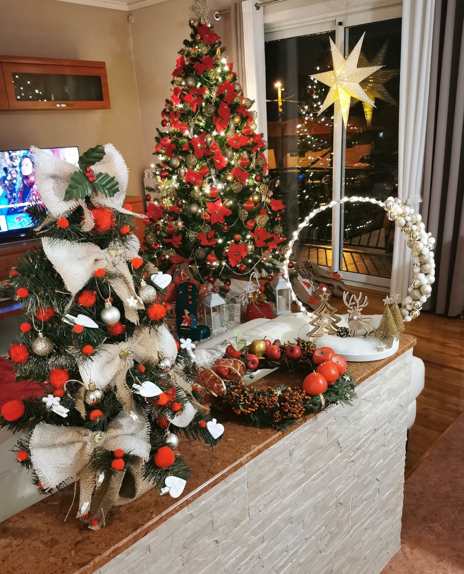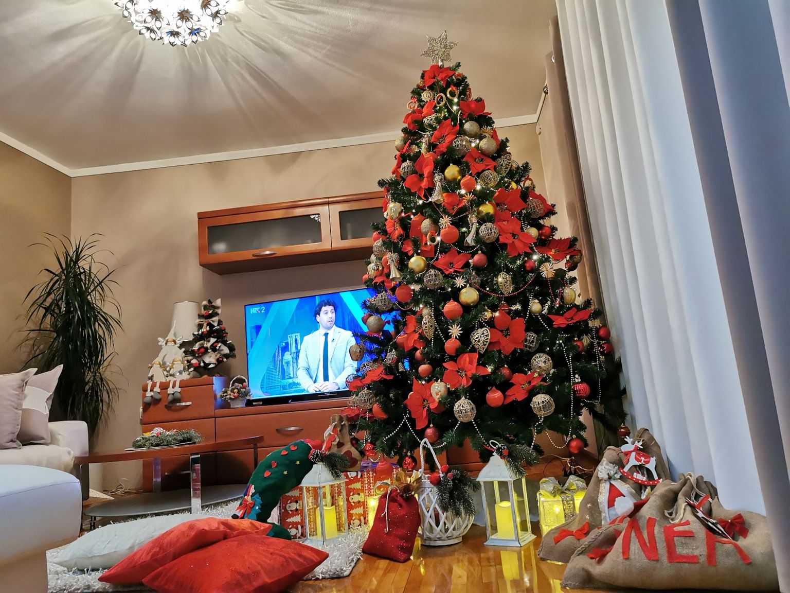 Božićno uređenje kuće Daniele Bobanović iz Rijeke u crveno-zlatnoj kombinaciji