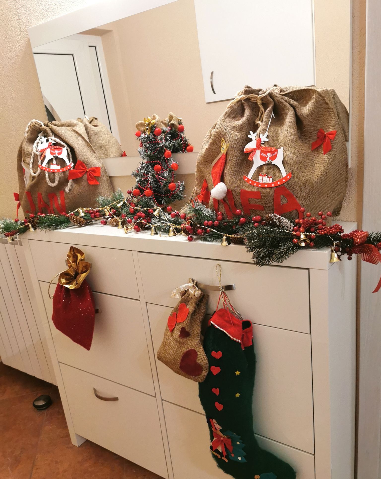 Daniela je od jute izradila mašne i vreće za svetog Nikolu te ih posprejala crvenom i bijelom bojom