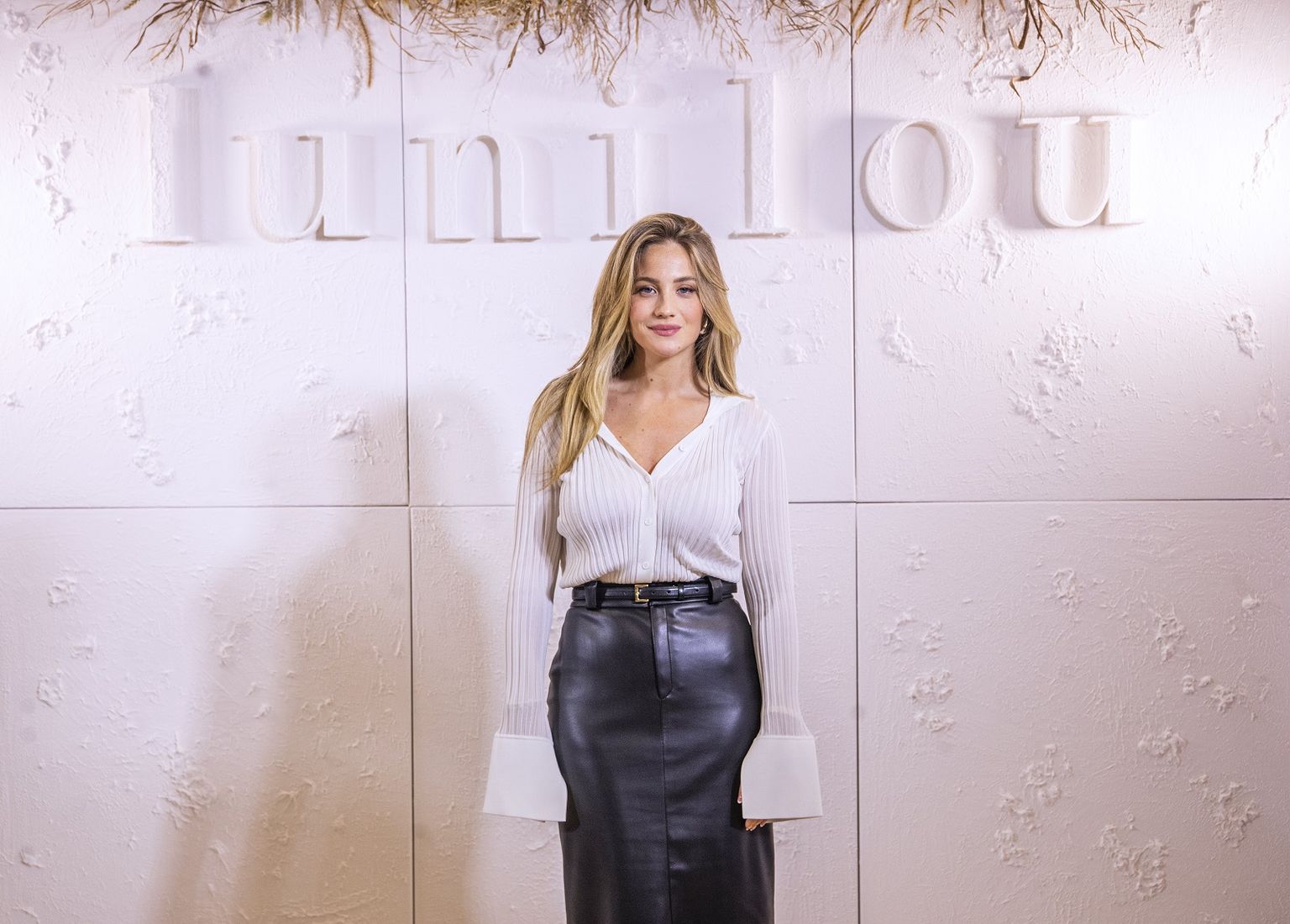 Smeđa kožnata suknja i glamurozan top