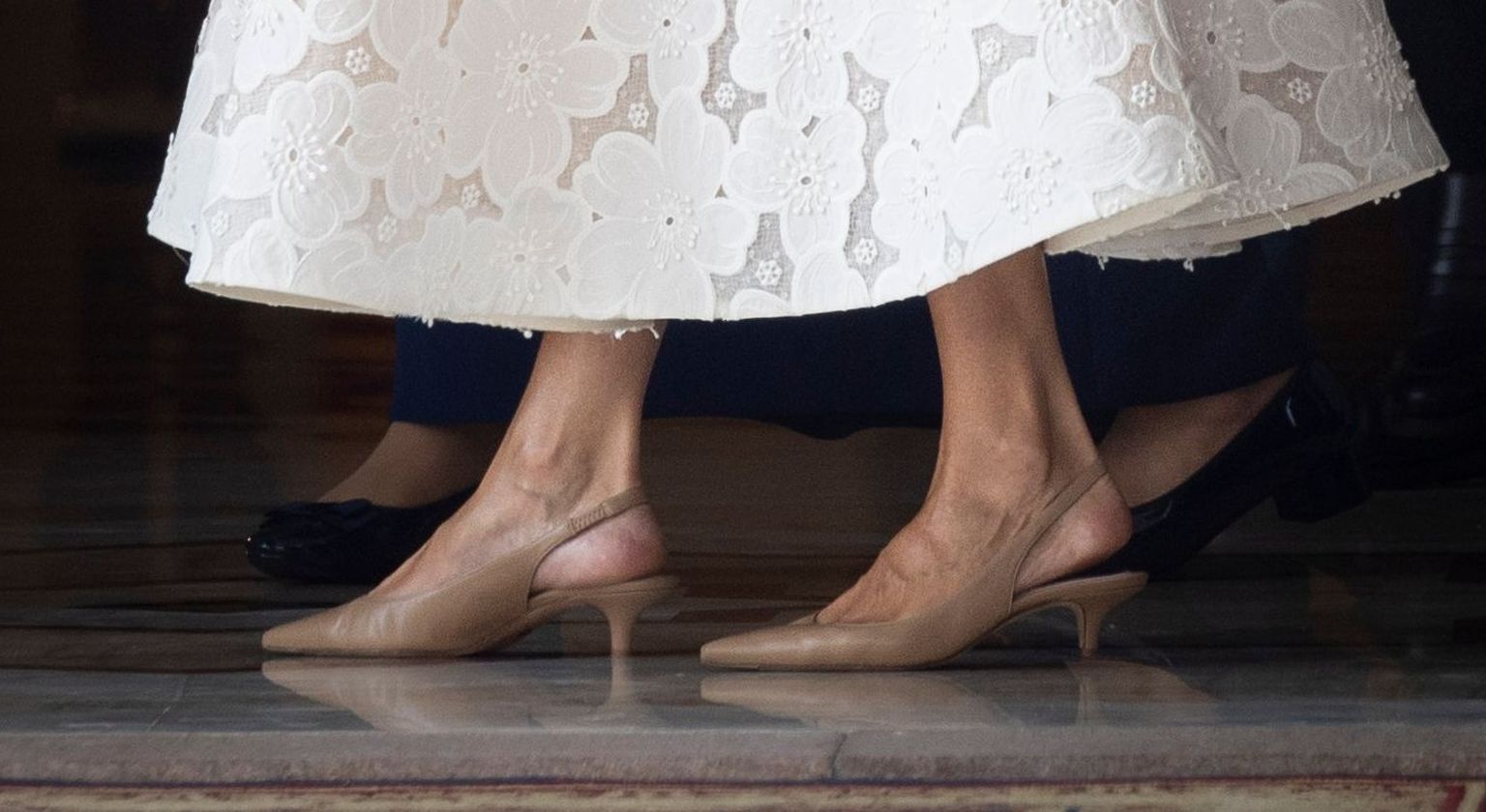 • Kraljica je uz haljinu nosila bež slingback cipele Foto: Profimedia