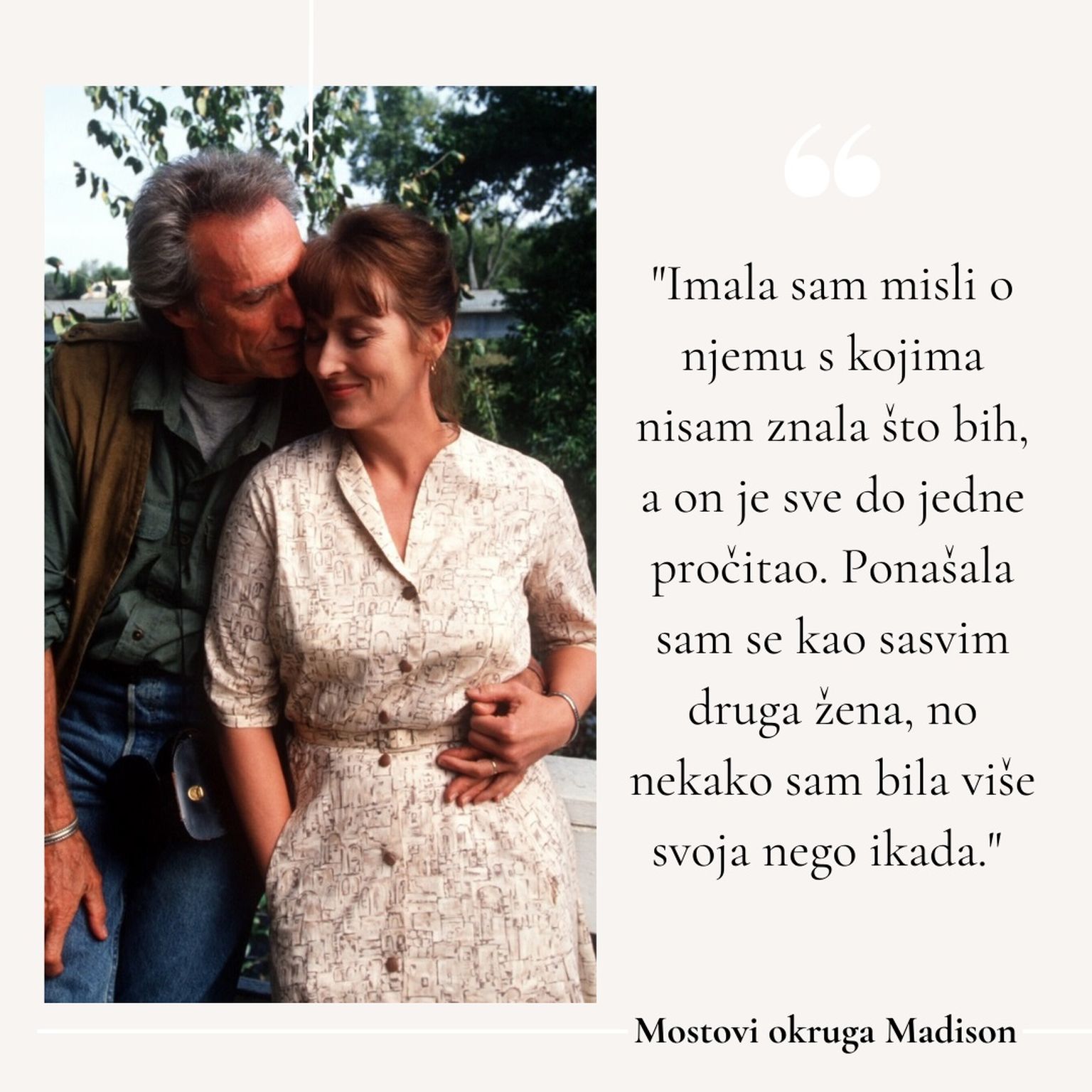 Producenti su za ulogu Francesce ciljali su na mlađu glumicu, ali Eastwood je znap da je Meryl Streep stvorena za tu ulogu Foto: Profimedia -