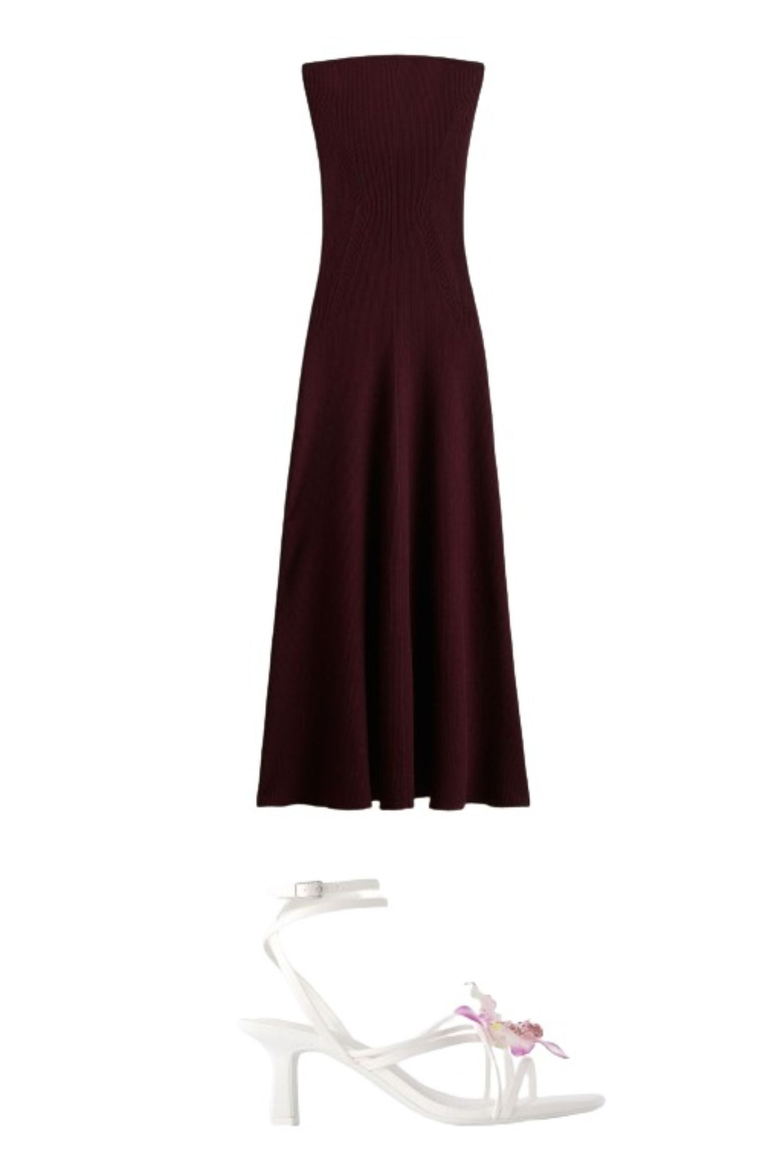 Haljina bez naramenica + sandale na visoku potpeticu