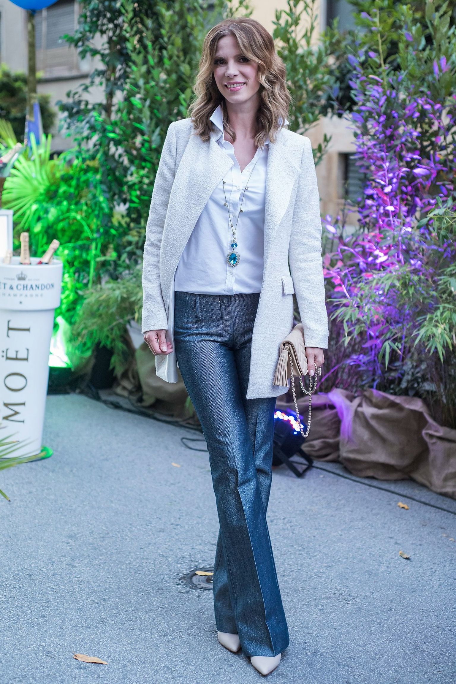 Haljina sa šljokicama, jakna i štikle u večernjem izdanju
