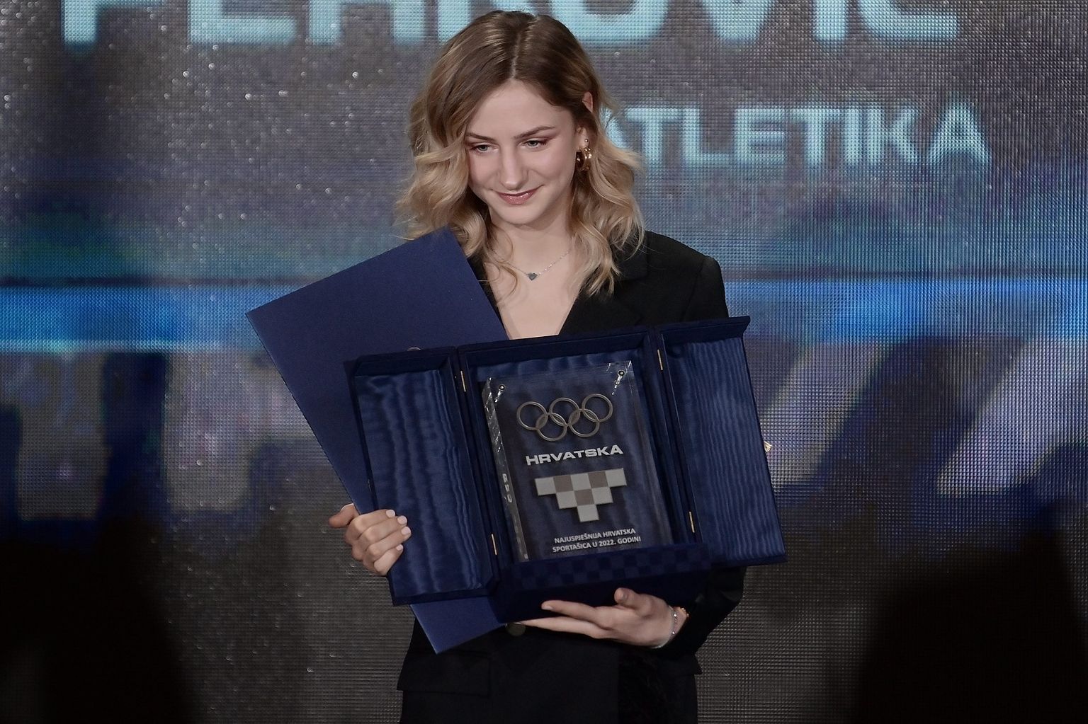 • Lena Stojković s nagradom na Velikom danu hrvatskog sporta 2022. Foto: Damir Krajac/Cropix