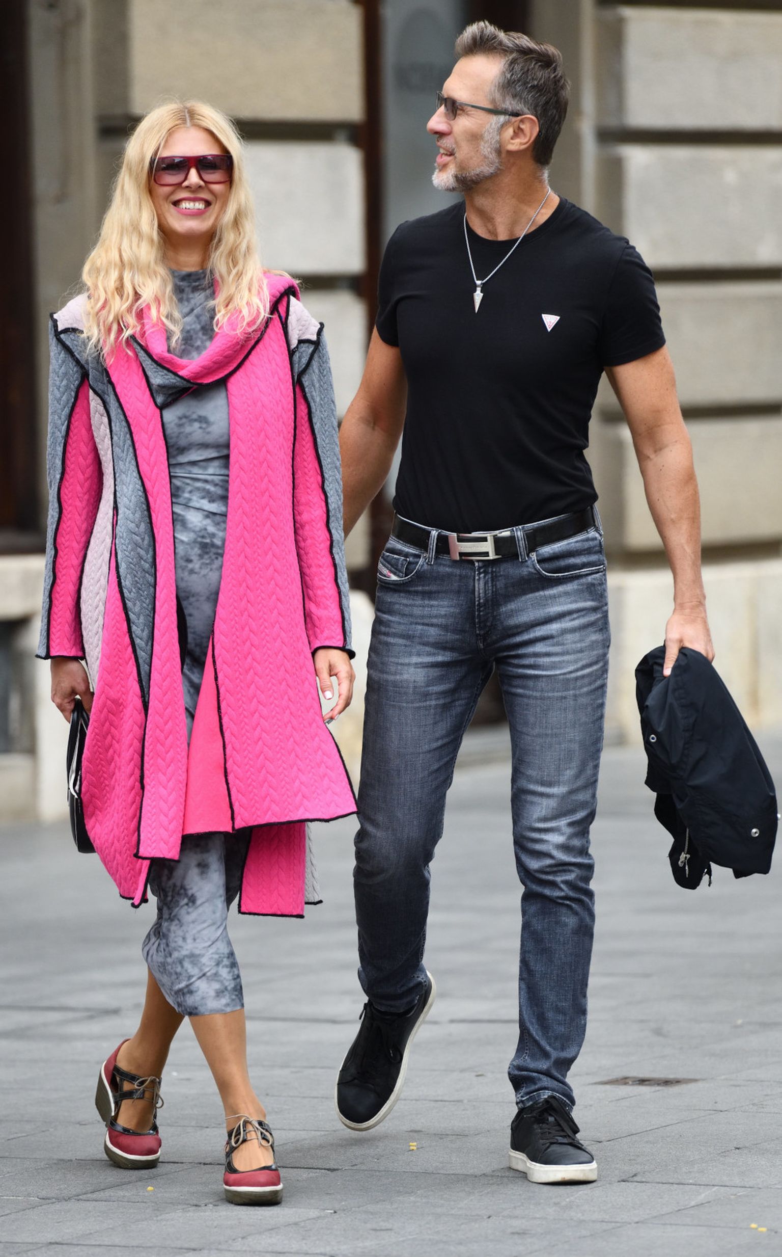 • Street style muškarac centrom Zagreba prošetao je u društvu dame u sivo-ružičastoj kombinaciji Foto: Josip Moler/Cropix