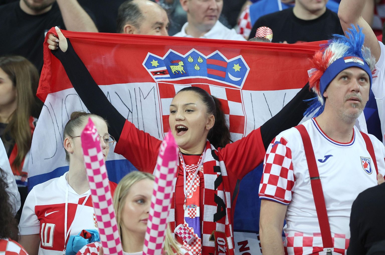 • Navijačke kombinacije na polufinalnom dvoboju Hrvatske i Francuske Foto: Sanjin Strukic/Pixsell