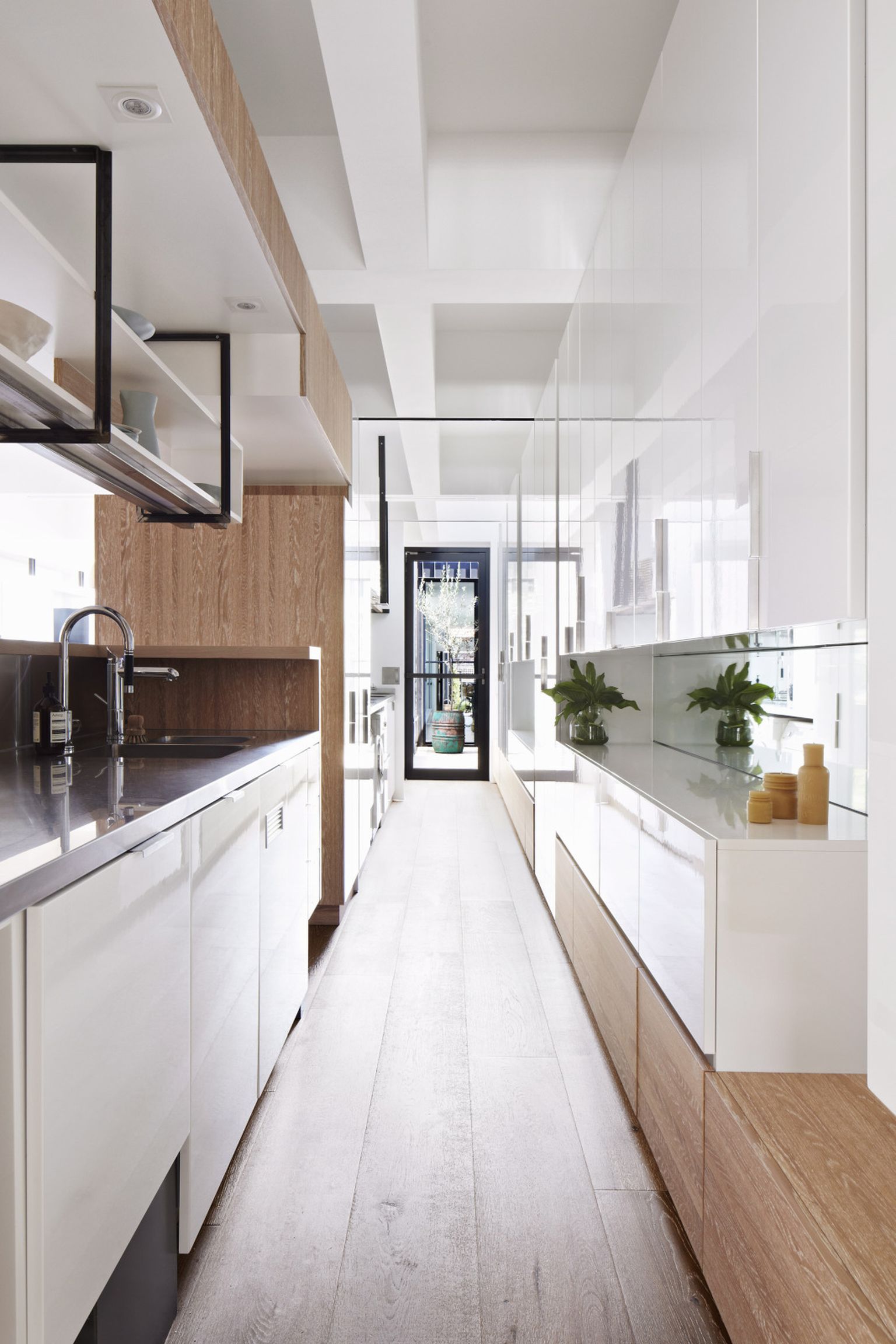 • Kuhinja je izvedena u svijetlom drvu i bijelim površinama, s dugom radnom plohom koja se proteže gotovo cijelom dužinom prostora Foto: Living4media
