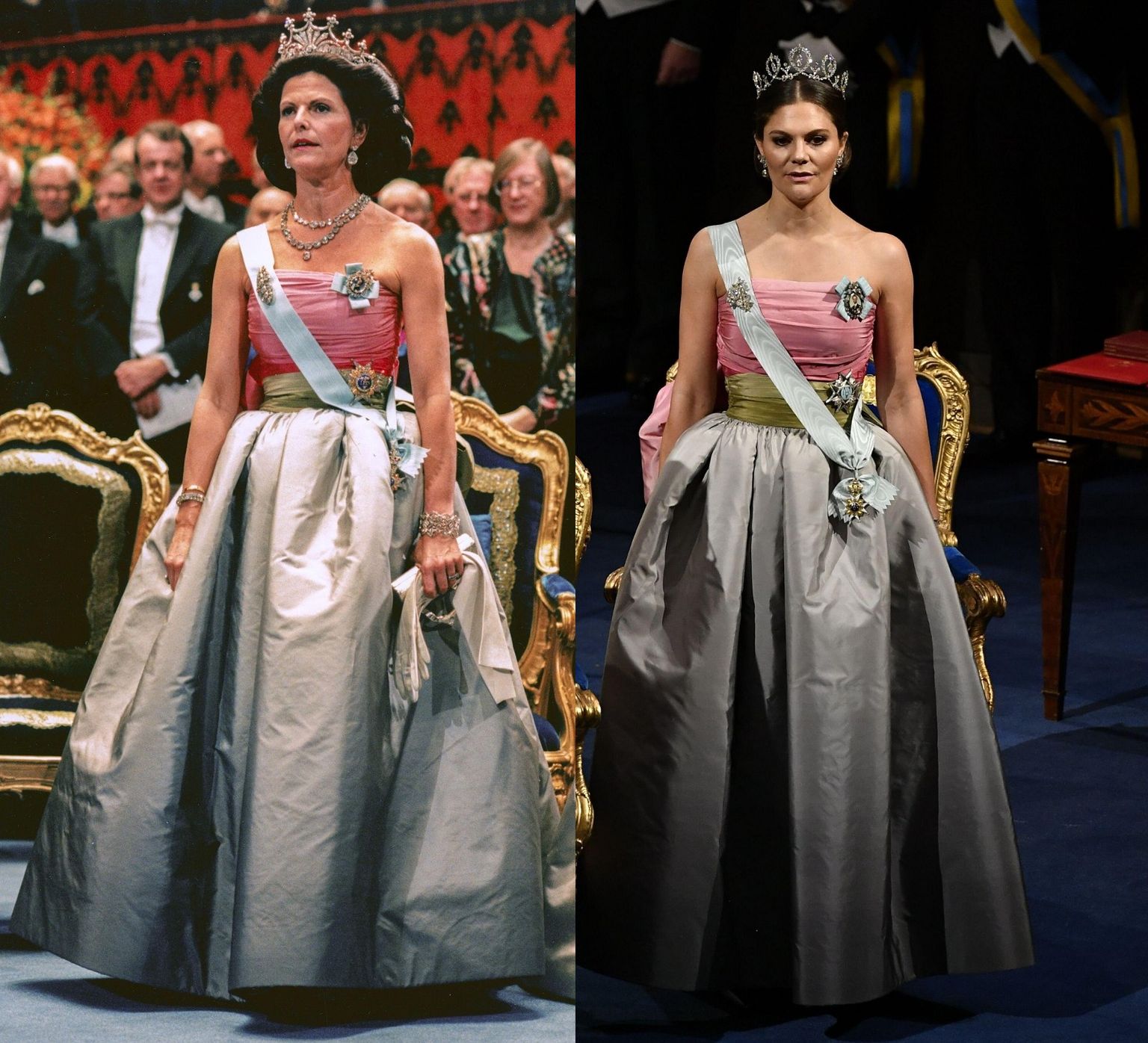 • Švedska kraljica Silvija i krunska princeza Viktorija u istoj balskoj haljini Foto: Guliver