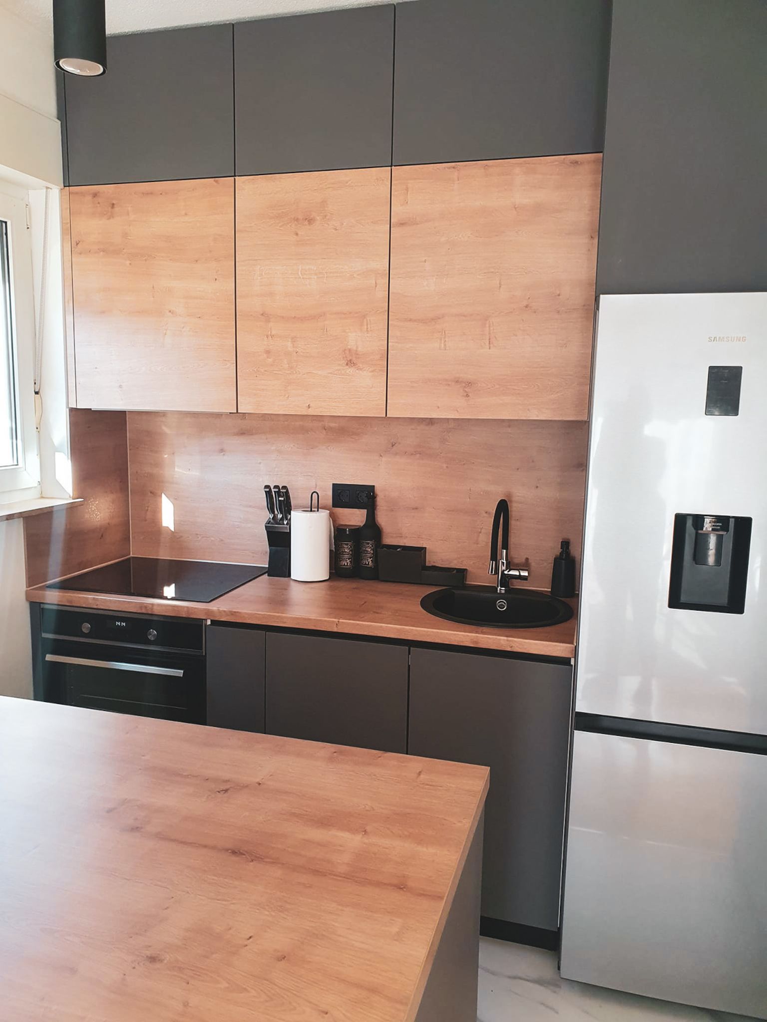 • Kombinacija drveta i sive boje u kuhinji pokazala se kao pun pogodak Foto: Privatne fotografije