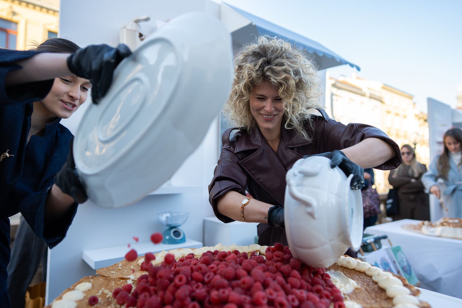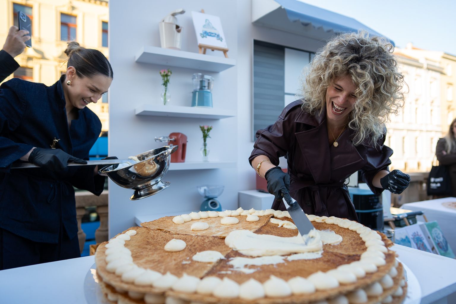 • Erika i Eni dovršavaju mille-feuille tortu ispred posjetitelja festivala Jesi za tortu? Foto: Karlo Klasić/Nova Studio