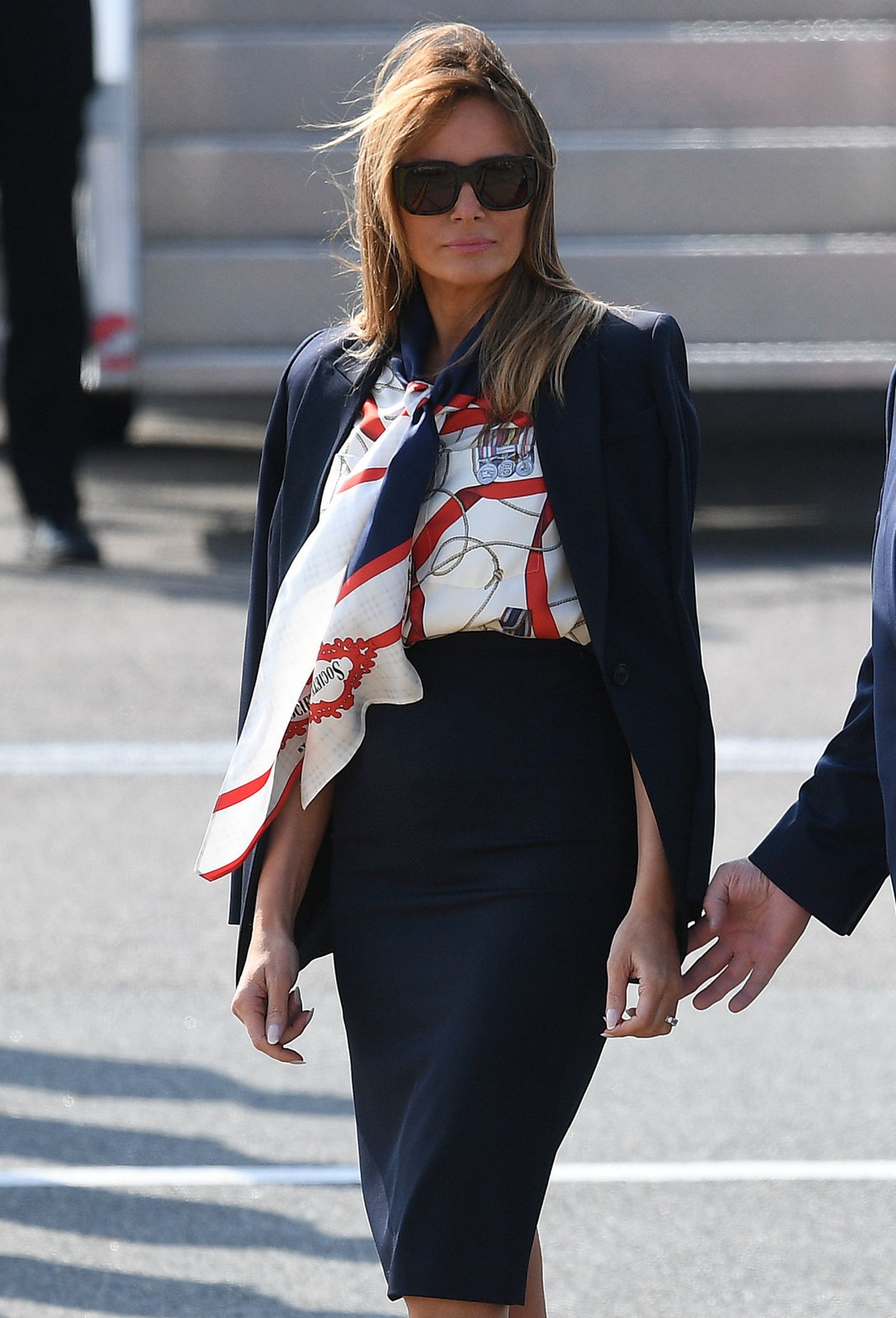 • Prva dama u elegantnom kostimu i topu modne kuće Burberry Foto: Getty Images