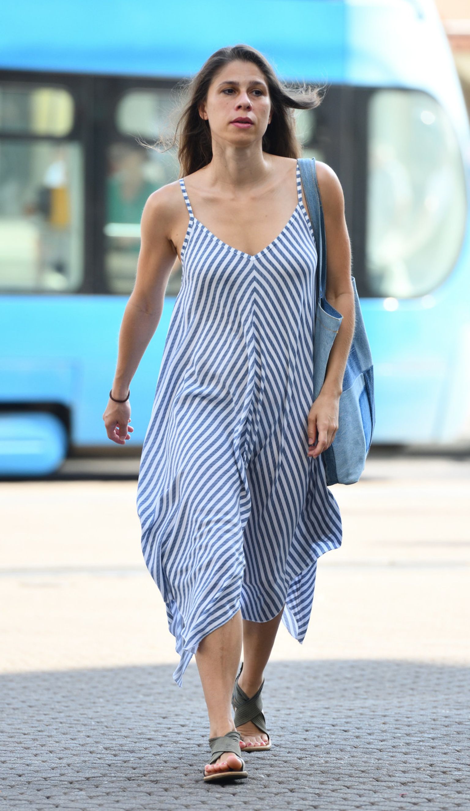 • Street stylerica iz centra Zagreba u plavoj maksi haljini Foto: Josip Moler/Cropix
