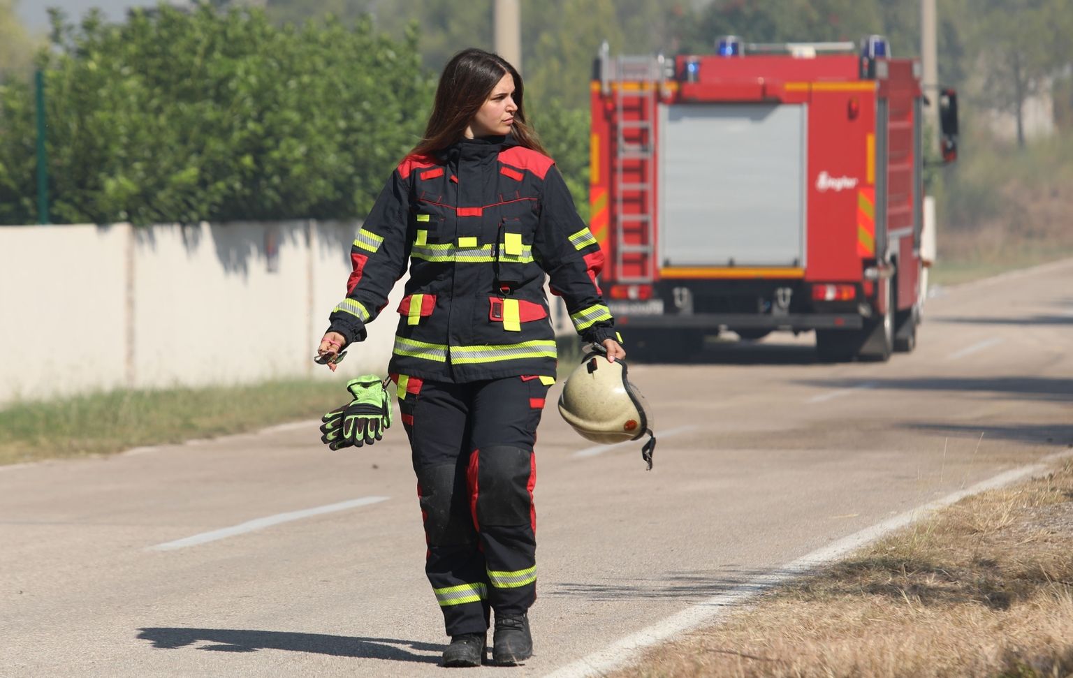 • Hrabre vatrogaskinje u borbi protiv požara Foto: Pixsell/Duško Jaramaz