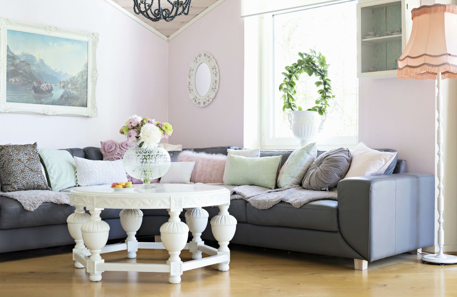 Stol, jastuci i ogledalo okruglog oblika Foto: Living4media -